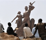 SENEGAL’S MONUMENT TO THE “AFRICAN RESISTANCE” WILL BE FORMALLY UNVEILED BEFORE FOREIGN DIGNITARIES AND CELEBRITIES ON SATURDAY. SLIGHTLY LARGER THAN NEW YORK’S STATUE OF LIBERTY, THE GIANT STATUE OF A MAN, WOMAN AND INFANT IS PERCHED ON A H ...