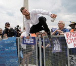The counter-demonstrator threw and object into the crowd and screamed ‘I’m not shooting the school’ as he was detained.