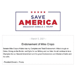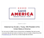 No more money for RINOS. They do nothing but hurt the Republican Party and our great voting base—they will never lead us to Greatness. Send your donation to Save Americ ...