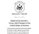 Statement by Donald J. Trump, 45th President of the United States of America