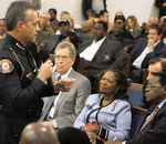 Pasadena Police Chief Phillip Sanchez meets with residents at New Revelation Missionary Baptist Church to discuss the investigation into the controversial police shooting of 19-year-old Kendrec McDade on a Pasadena street. Some participants said the ...