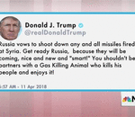 President Trump tweeted Wednesday morning that 'Russia vows to shoot down any and all missiles fired at Syria. Get ready Russia, because they will be coming, nice and new and 'smart!' Th ...