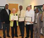 Left to Right: Mayor Wayne Hall, Don Durant, Honoree, Leone Baum, Honoree, Max Rodriquez, Honoree, Mark Bonilla, Hempstead Town Clerk, Phil Andrews, President, 100 Black Men of Long Island, Inc.