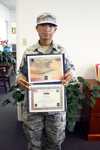 Senior Airman (SrA) Olive received Certificates of Appreciation for her service in the 379th Expeditionary Force Support Squadron and the 379th Air Expeditionary Wing. She also served with the Combined Joint Task Force Horn of Africa (CJTF-HOA), which conducts operations in the East Africa region to build partner nation capacity in order to promote regional security and stability, prevent conflict, and protect US and coalition interests.