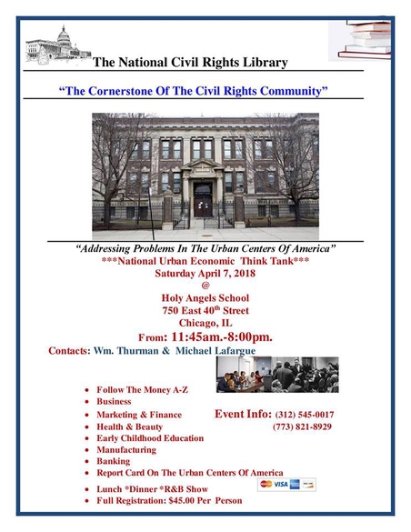 Our Mission that we hope to Achieve in presenting the **National Urban Economic Think Tank** on April 7, 2018 in Chicago, IL @ *Holy Angels School shall bring together Professsionals as well as the Common Person from Urban Centers from across the Country for the purpose of addressing some the most Pressing Issues that need to be addressed and hopefully writing a *Sumary as a result of having discussed possible Solutions which will further advance the upward Economic and Social Agenda’s in the Urban Centers of America.