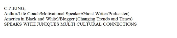 Rickey Johnson from Juniques Multi Cultural Connections (jusmcc.net) and C.Z. King, who is an author, life coach, motivational speaker, ghostwriter, podcaster, and the host of the YouTube video channel "America in Black and White." (https://americainblackandwhite.us/ )