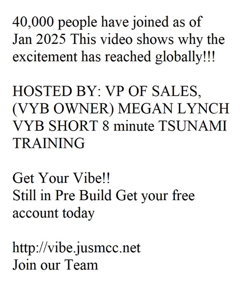 8 minutes of Power from VYB ( VIBE) Owner creates TSUNAMI effecting 40,000 people and growing (1911 hits)