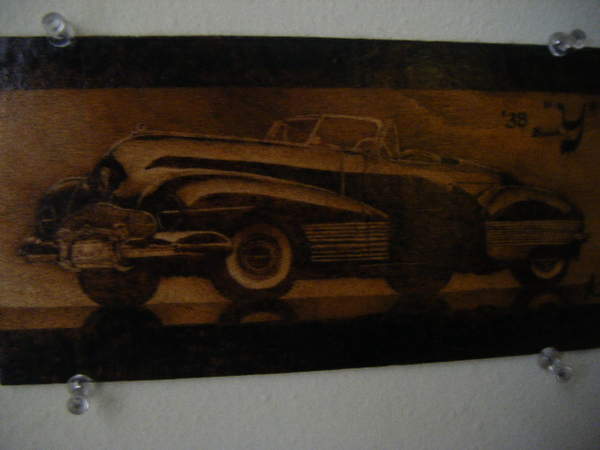 wood burning of a Buick Y (308 hits)